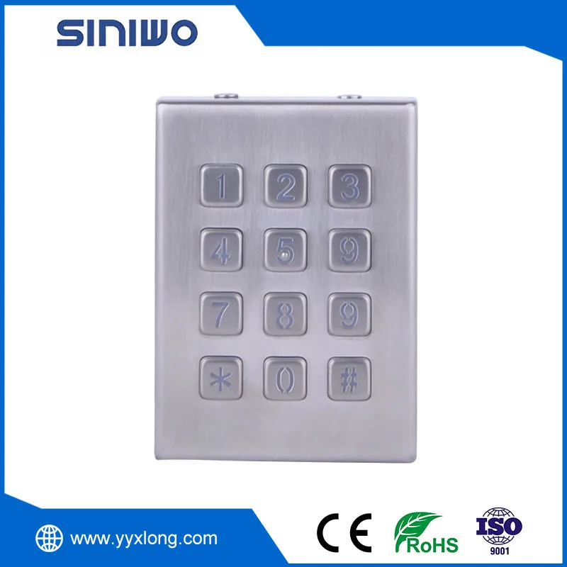 1. This 12 keys digital industrial keypad of SINIWO made in China with easy-to-disassemble stainless steel is high-quality, dustproof, waterproof, corrosion-proof, explosion-proof and prying-proof, and can work normally in harsh environments. It is mainly designed for outdoor telephone entry system and the metal enclosure, keys and internal rear panel are built from durable SUS304# stainless steel with high resistance to impact and vandalism and is also sealed to IP67.