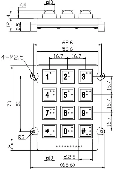 Parameter of 3×4 industrial keypad :