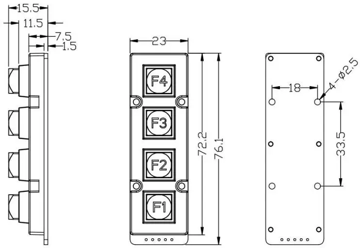 Industrial Metal Mounted Keypad is innovatively divided into four independent parts, each of which is clearly marked with “F1”, “F2”, “F3” and “F4” numbers and letter combinations, which not only improves the key recognition, but also greatly enriches the functionality of the keypad. Whether it is quickly switching operating modes, executing specific commands or performing complex data input, it can be easily handled, significantly improving work efficiency. In addition, the keys also support customization.