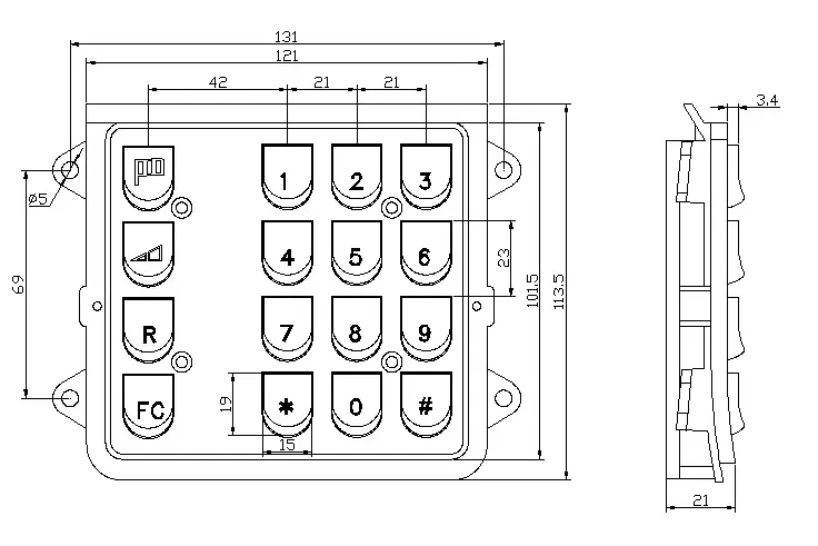 1. There are 16 main keys on industrial vandal resistant keypad, including commonly used symbol keys, number keys and letter keys. The layout of these keys is compact and orderly, which conforms to the input habits of most users. In addition, there are several special function keys and the letter keys can be customized to switch different input modes or perform specific operations.
