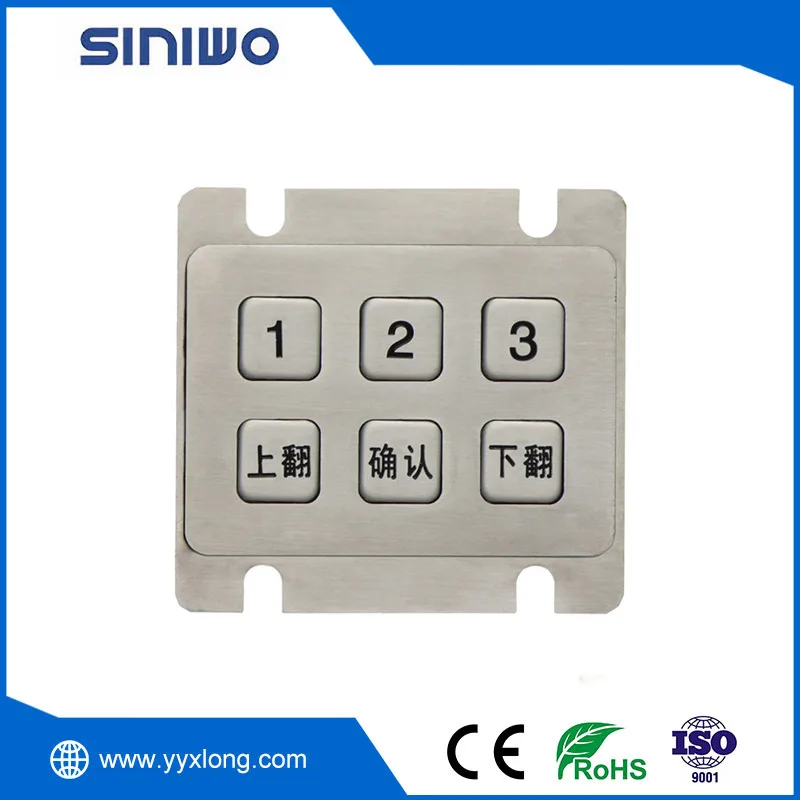 stainless steel public Keypad of SINIWO are laser engraved and painted with high-strength paint. SINIWO specially designed stainless steel industrial keyboards meet high requirements in design, function, service life, quality and high protection level. The panel and keys are made of high-quality stainless steel and have strong anti-destruction ability.Mainly used in access control systems and other public facilities.