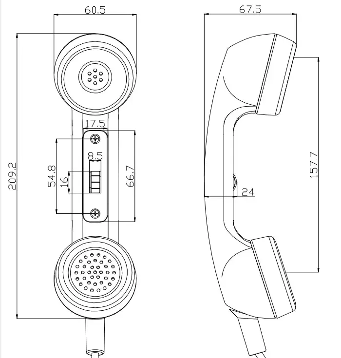 1. SINIWO volume control telephone handset was updated base on the traditional PTT switch handset by increasing a rotary volume switch inside to adjust the speaker voice. It could be made with controlling microphone volume too according to customer’s request. Here is the dimension drawing for your reference.